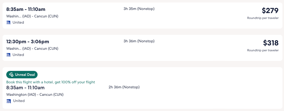 Discounted flights from Denver, Chicago, Houston, Washington DC to Cancun, Mexico from $210 round-trip.