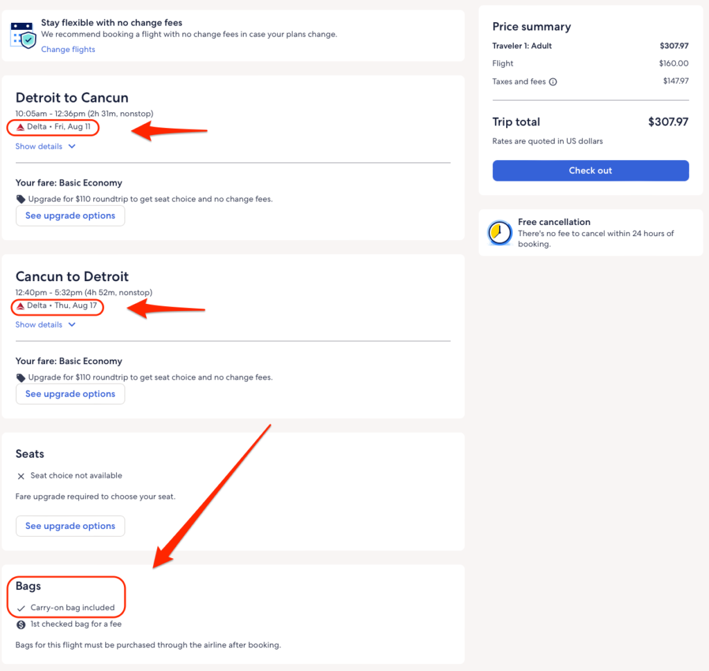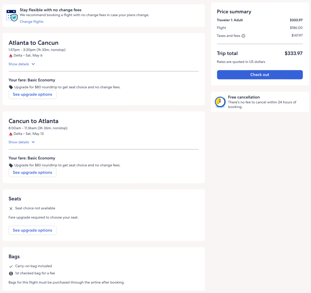 Discounted flights from Atlanta, New York, Boston, Detroit, Minneapolis, LA to Cancun, Mexico from $298 round-trip.
