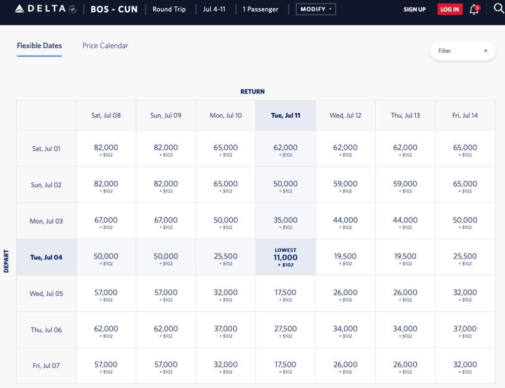 Screenshot from Delta.com, made on 03/28/23