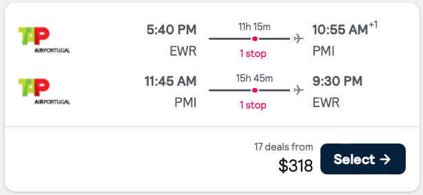 Discounted flights from Newark to Palma De Mallorca (Balearic Islands), Spain from $318 round-trip.