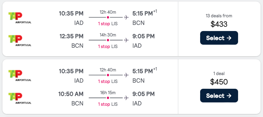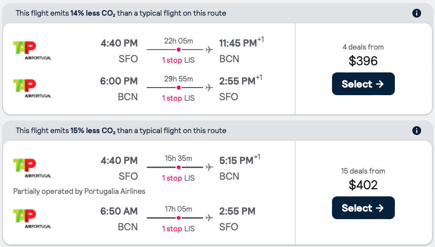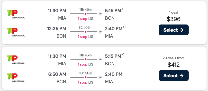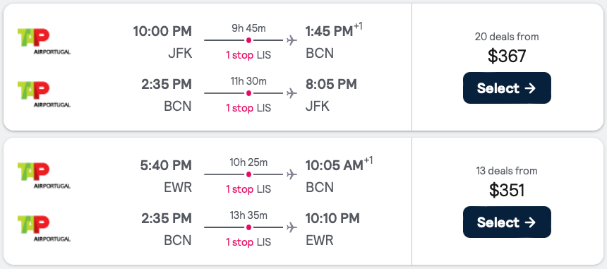 Discounted flights from New York, Newark, Miami, Washington DC, San Francisco to Barcelona, Spain from $351 round-trip.