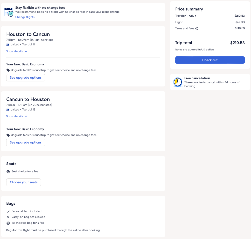 Discounted flights from Houston to Cancun, Mexico from $211 round-trip.