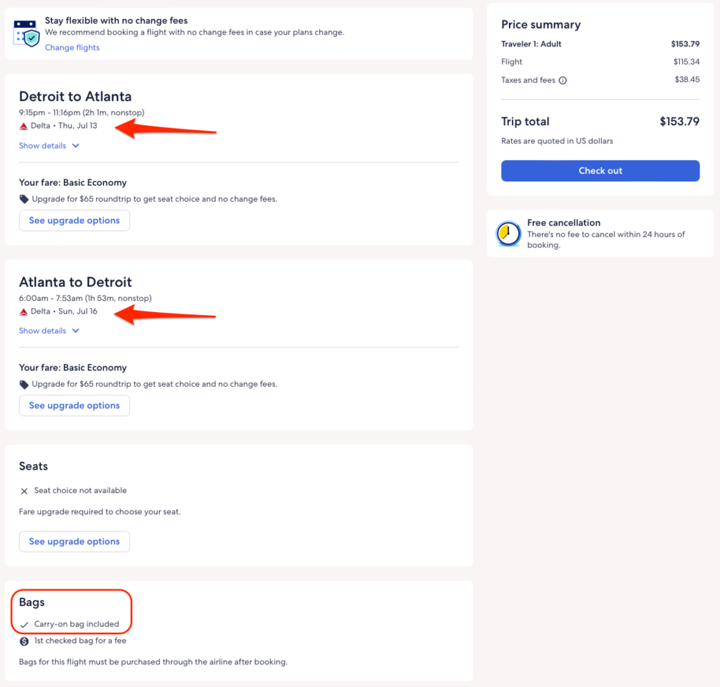 Discounted flights between Detroit and Atlanta from $154 round-trip.