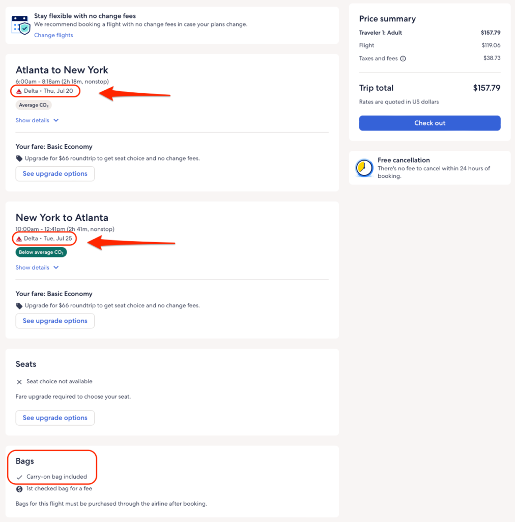 Discounted flights between Atlanta and New York from $158 round-trip.