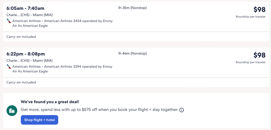 Discounted flights from Atlanta, New York, New Orleans, Charleston to Miami from $90 round-trip.