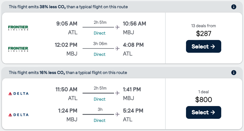 Discounted flights from Atlanta, Miami, Orlando, Chicago to Jamaica: Montego Bay from $204 round-trip.