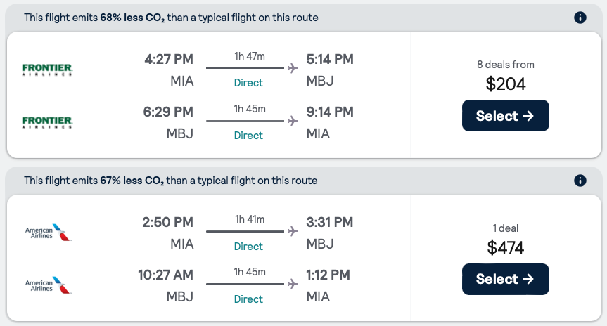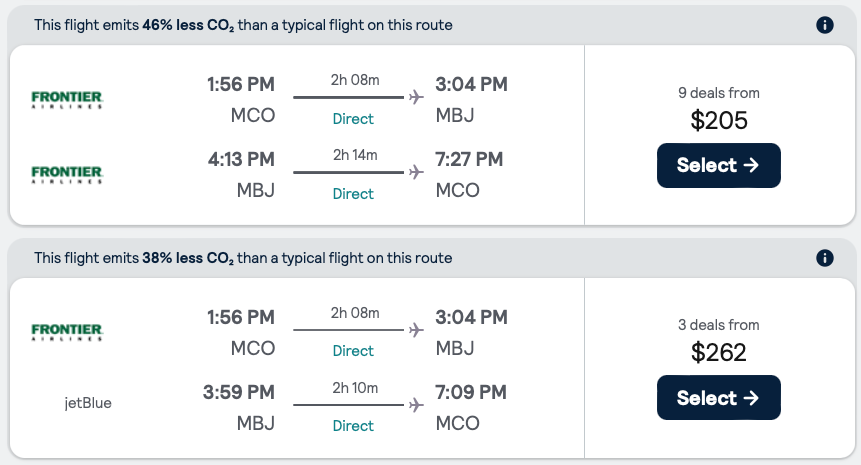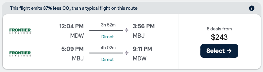 Post contains offers from Frontier — budget carrier with optional fees: baggage, seat selection etc.