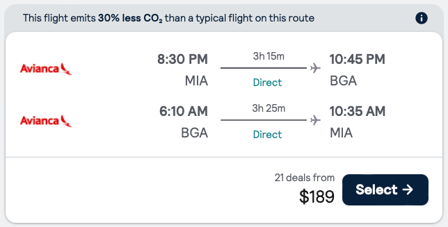 Discounted flights from Miami to Colombia: Bogota, Santa Marta, Cartagena, Bucaramanga from $189 round-trip.