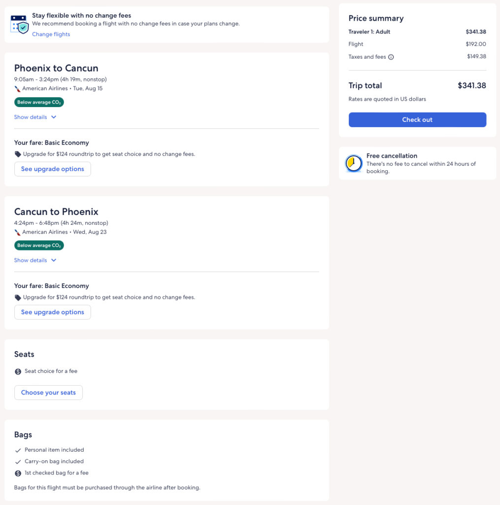 Discounted flights from Phoenix to Cancun, Mexico from $342 round-trip.