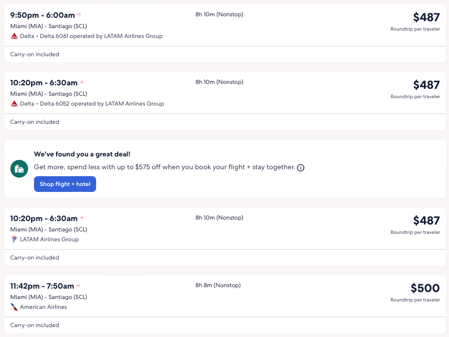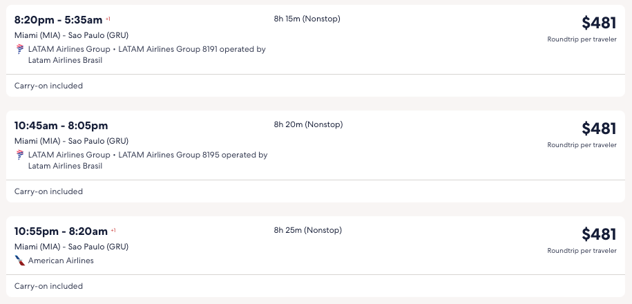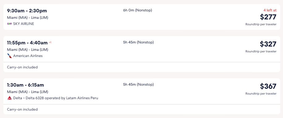 Discounted flights from Miami to Brazil, Chile, Peru from $277 round-trip.