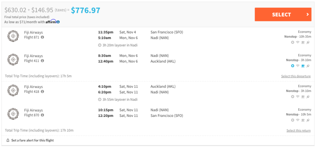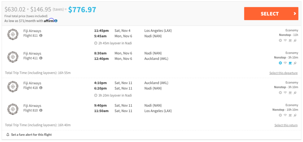 Discounted flights from LA and San Francisco to Auckland, New Zealand from $777 round-trip.