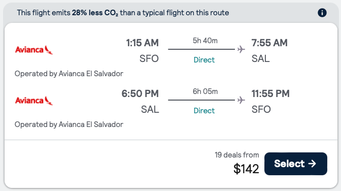 Discounted flights from New York, Houston, Washington DC, Miami, LA and San Francisco to El Salvador from $142 round-trip.