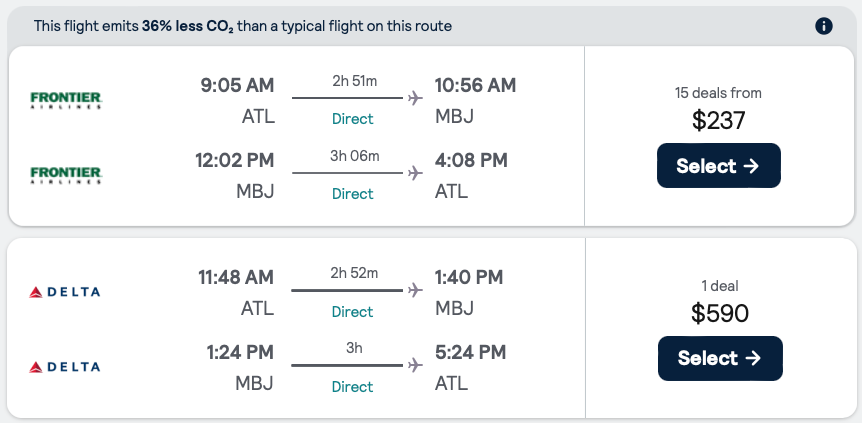 Discounted flights from Atlanta, Miami, Orlando, Chicago, Philadelphia, Newark, Denver, Dallas to Jamaica: Montego Bay from $223 round-trip.