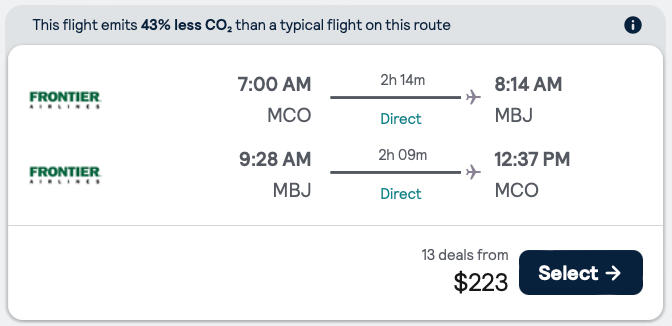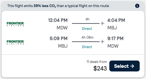 Post contains offers from Frontier — budget carrier with optional fees: baggage, seat selection etc.