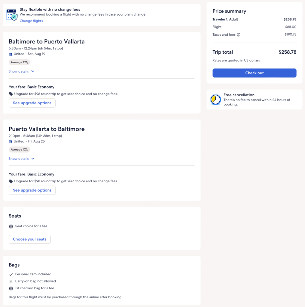 Discounted flights from Baltimore to Puerto Vallarta, Mexico from $259 round-trip.