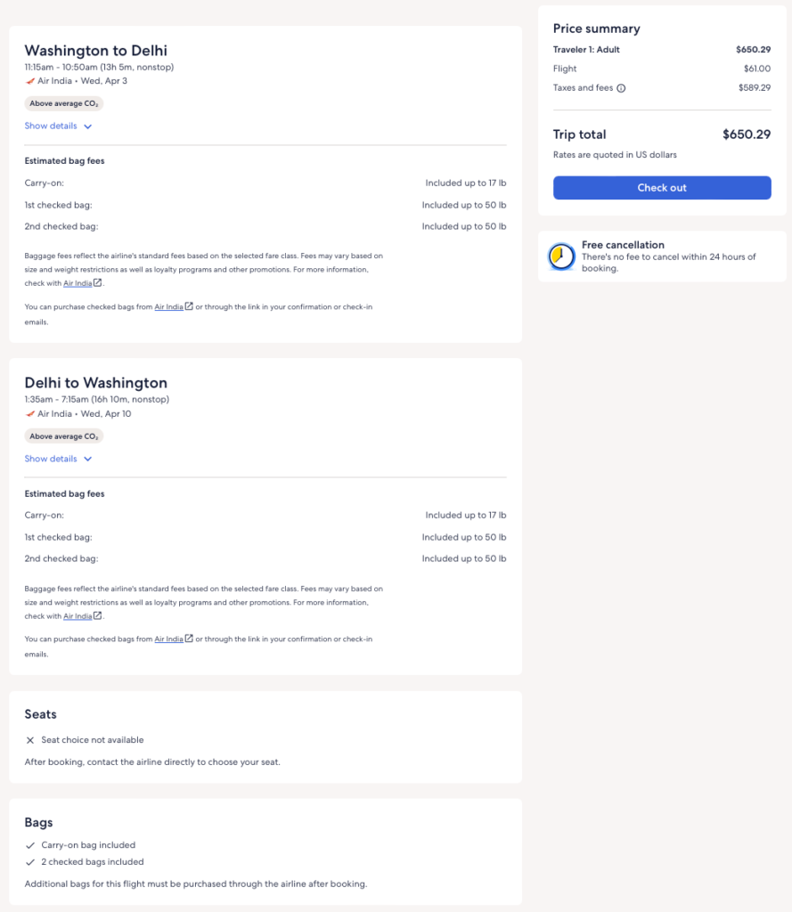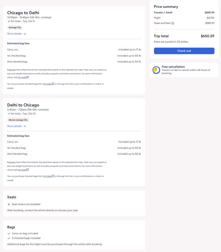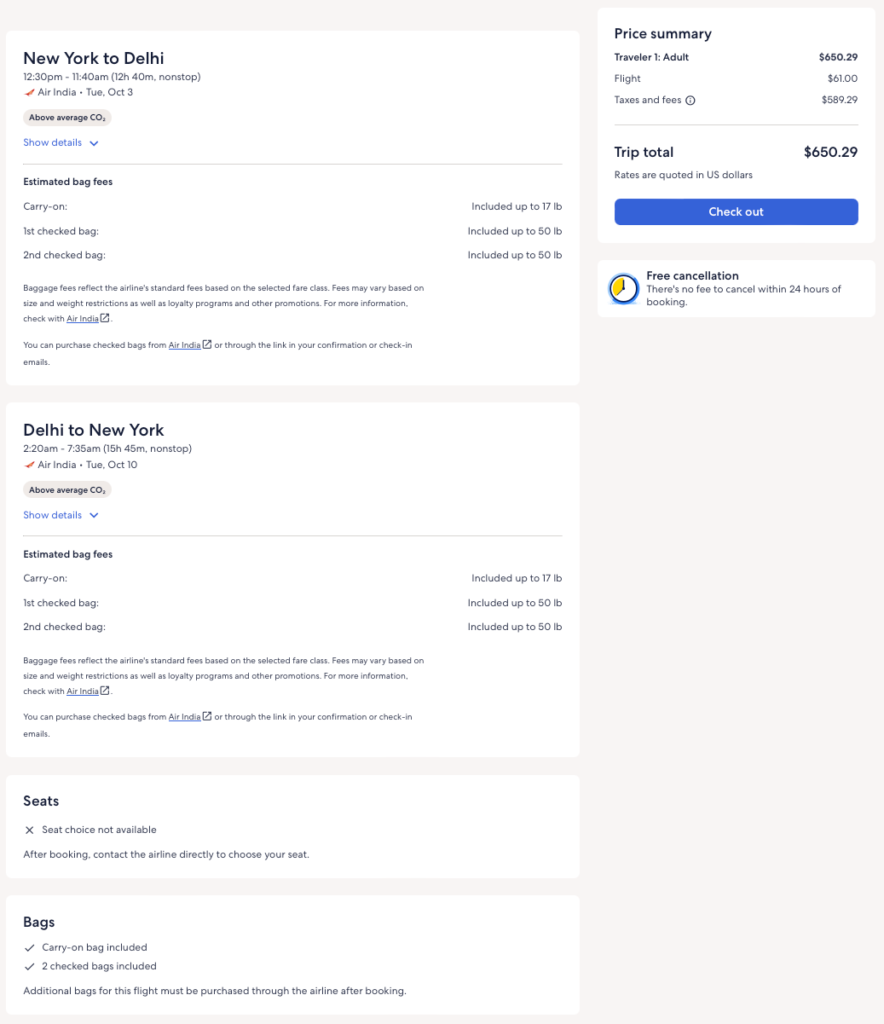 Discounted flights from New York, Chicago, Washington DC to New Delhi, India from $650 round-trip.
