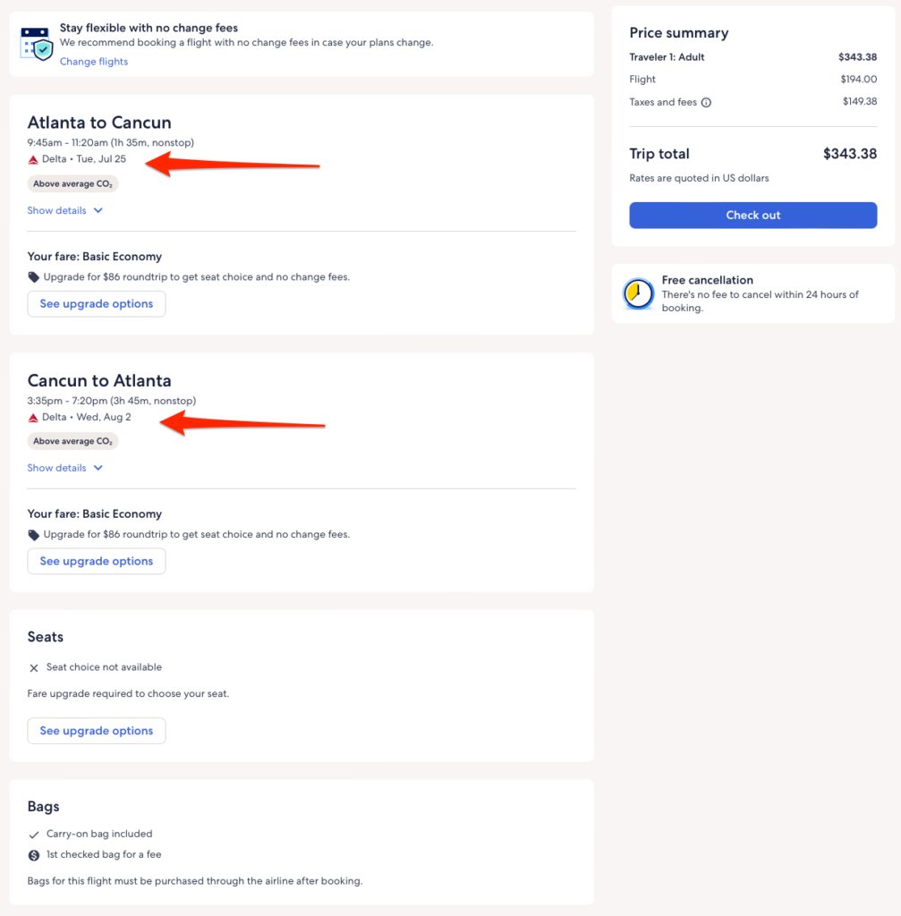 Discounted flights from Atlanta to Cancun, Mexico from $344 round-trip.