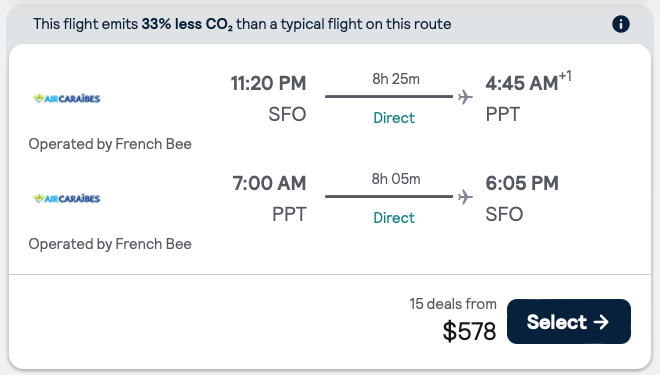 Nonstop flights to Tahiti from San Francisco for $587 R/T