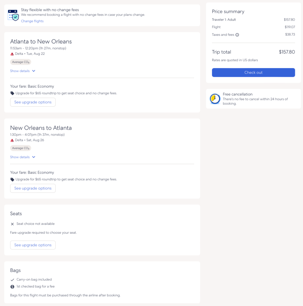 *late summer* Delta nonstop flights to New Orleans from Atlanta for $158 R/T or 11k SkyMiles + t&f