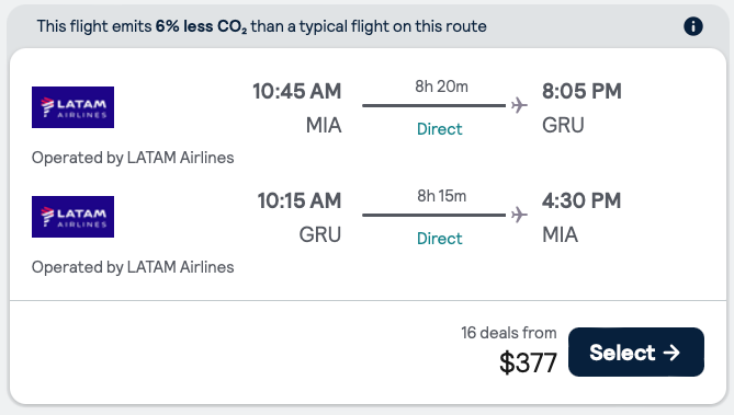 Discounted flights from Miami to Sao Paulo, Brazil from $377 round-trip.
