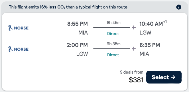 Note, that Norse is a budget carrier with optional fees: baggage, seat selection etc.