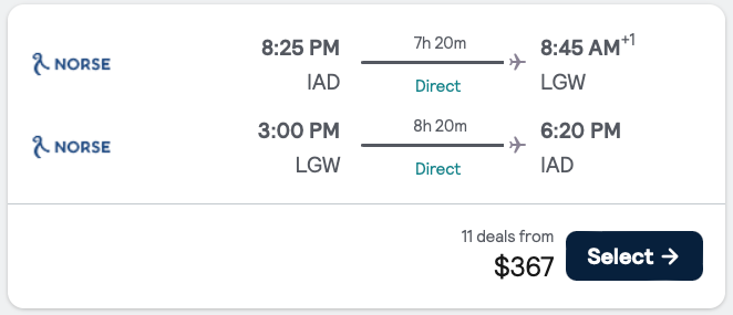 Note, that Norse is a budget carrier with optional fees: baggage, seat selection etc.