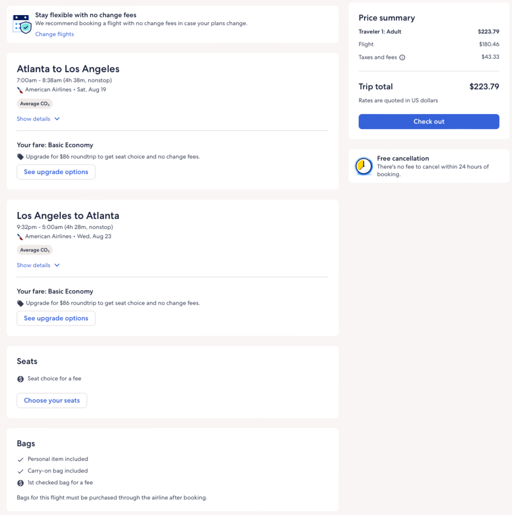 Discounted flights from Atlanta to LA and v/versa from $224 round-trip.