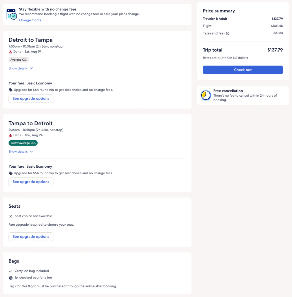Discounted flights from Atlanta, Detroit, Minneapolis to Tampa, Florida from $138 round-trip.