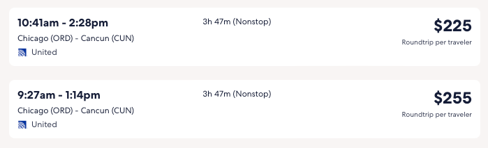 Discounted flights from Chicago to Cancun, Mexico from $225 round-trip.