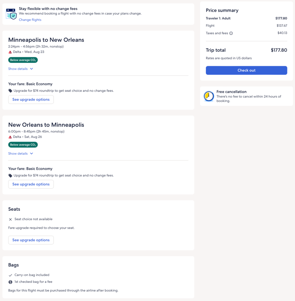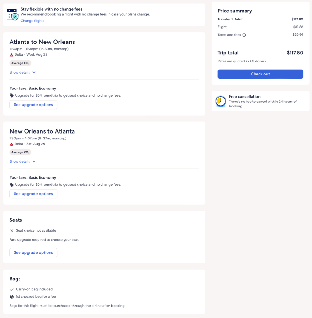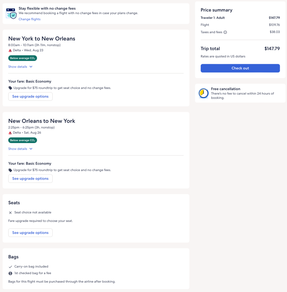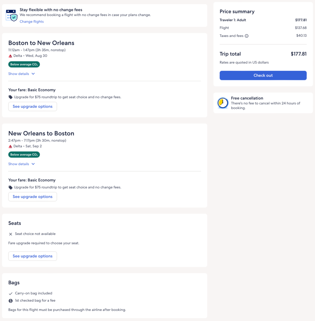 Discounted flights from Atlanta, New York, Boston, Minneapolis, LA to New Orleans from $118 round-trip.