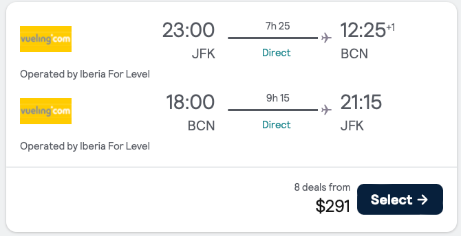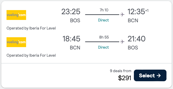 Note, that Vueling is a budget carrier with optional fees: baggage, seat selection..
