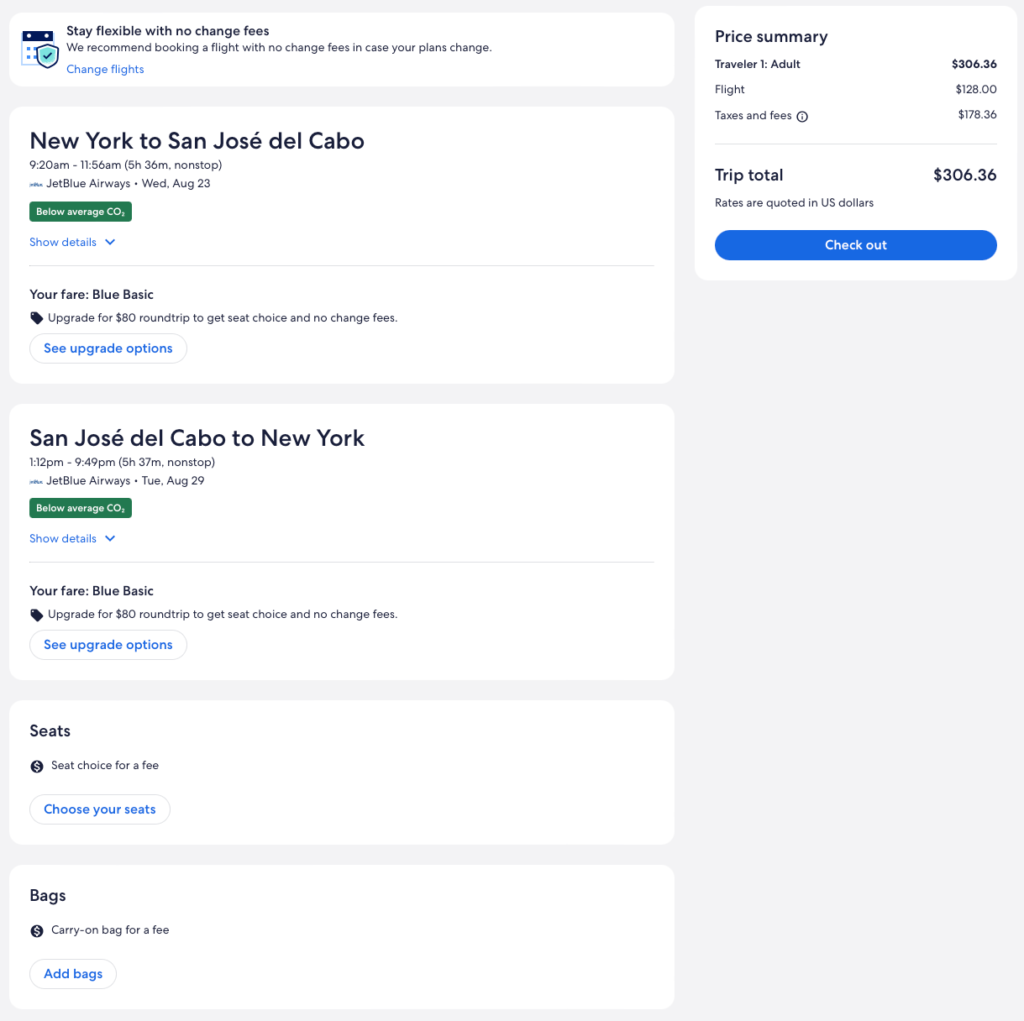 Discounted flights from NYC to Los Cabos, Mexico from $307 round-trip.