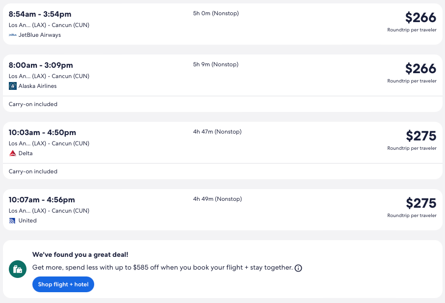 Discounted flights from Atlanta to Cancun, Mexico from $266 round-trip.