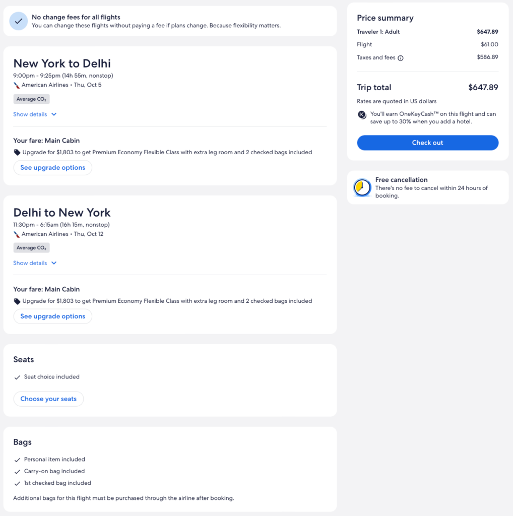 AA nonstop flights to New Delhi, India from NYC for $648 R/T