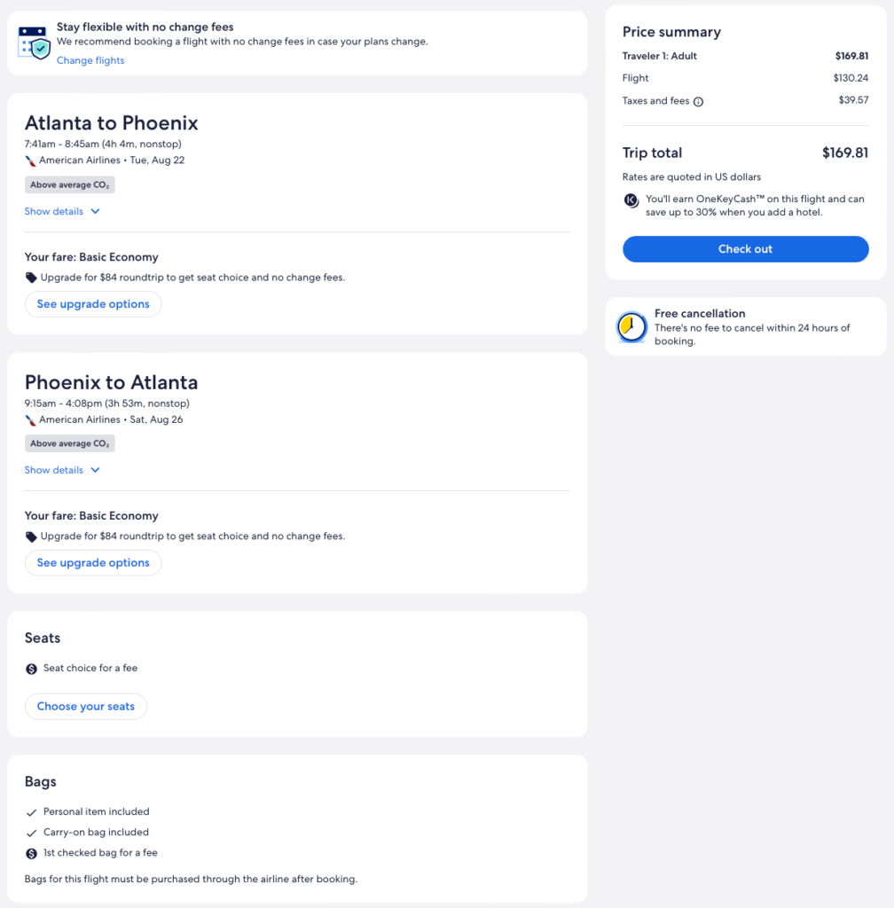 Discounted flights between Atlanta and Phoenix from $170 round-trip.