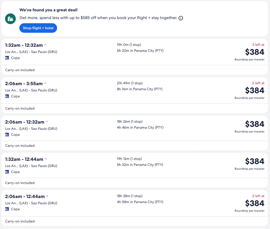 Discounted flights from LA to Sao Paulo, Brazil from $384 round-trip.