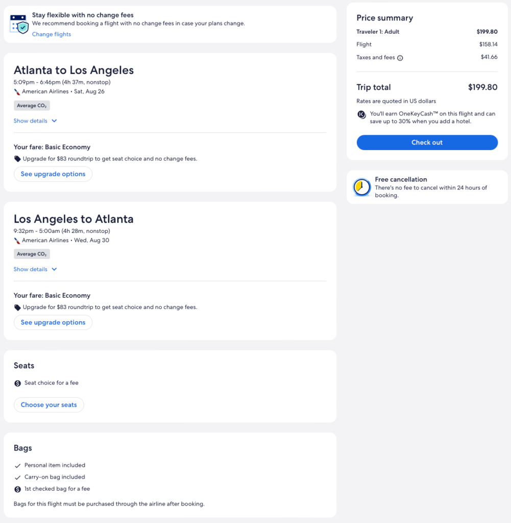 *late summer* AA nonstop flights between Atlanta and LA for $100 one-way