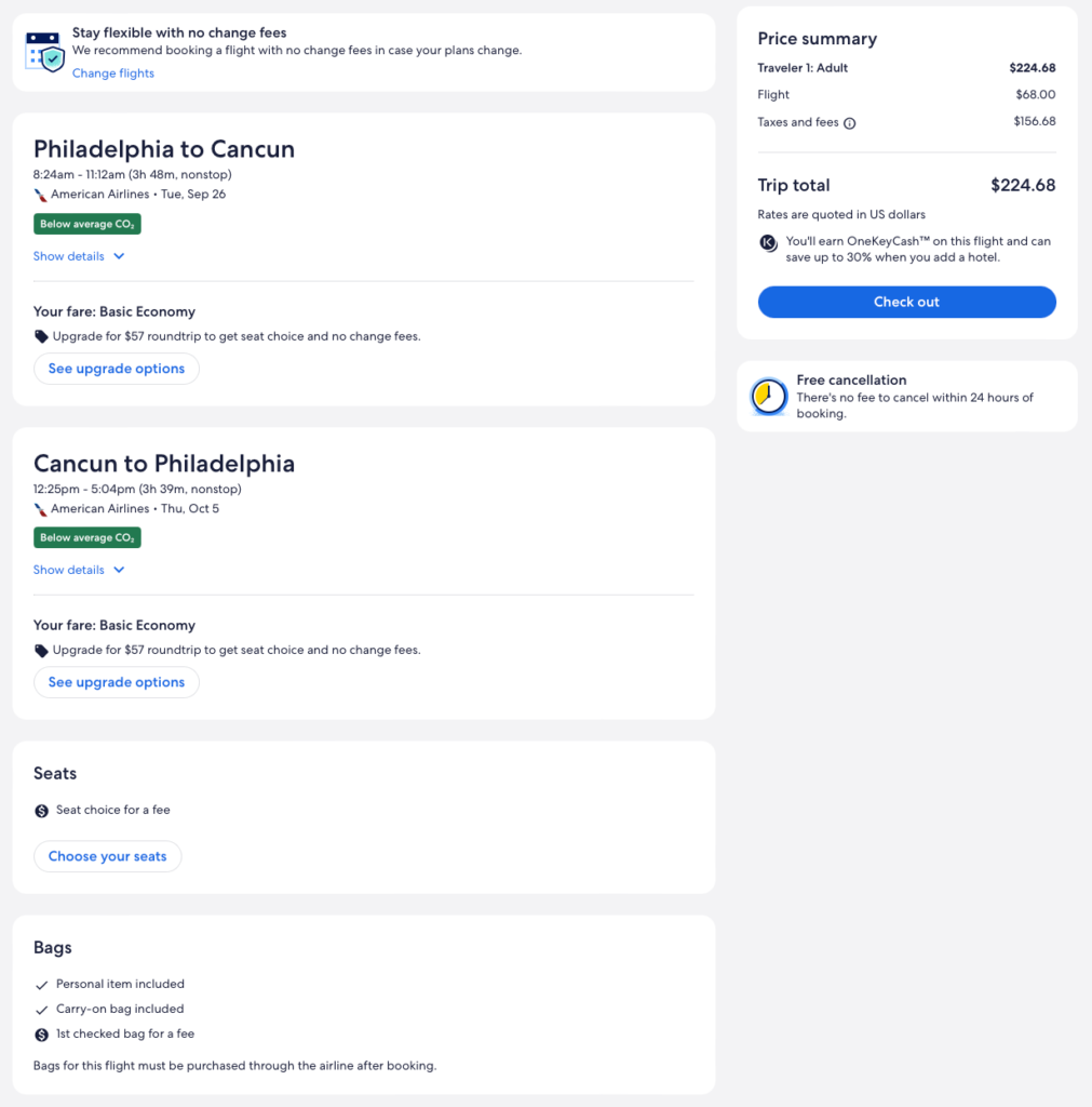 Discounted flights from Philadelphia to Cancun, Mexico from $225 round-trip.