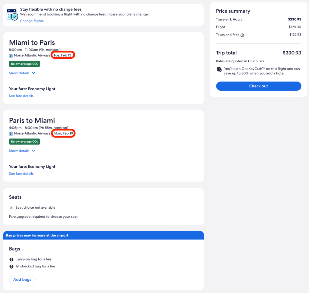Note, that Norse is a budget carrier with optional fees: seat selection, baggage etc.