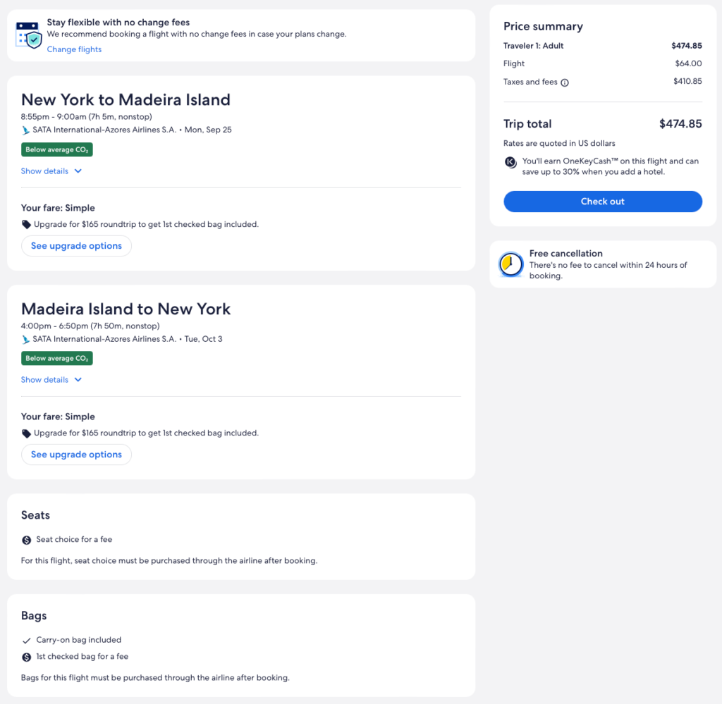 Discounted flights from New York to Madeira Island from $475 round-trip.