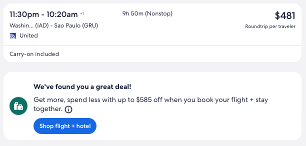 United nonstop flights to Brazil: São Paulo from Washington DC for $481 R/T