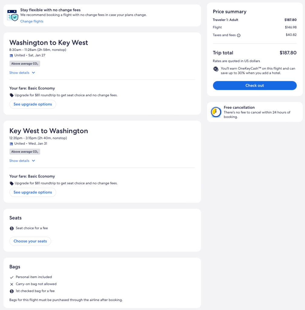 Discounted flights from Washington DC and Houston to Key West, FL from $188 round-trip.