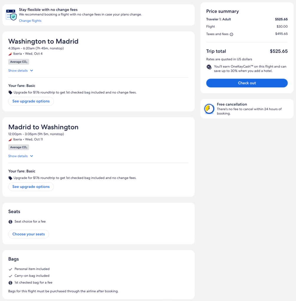 Discounted flights from Washington DC to Madrid, Spain from $525 round-trip.